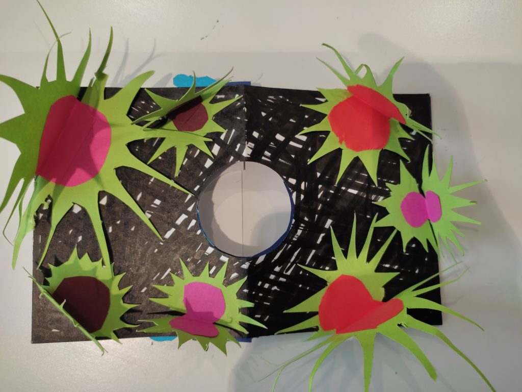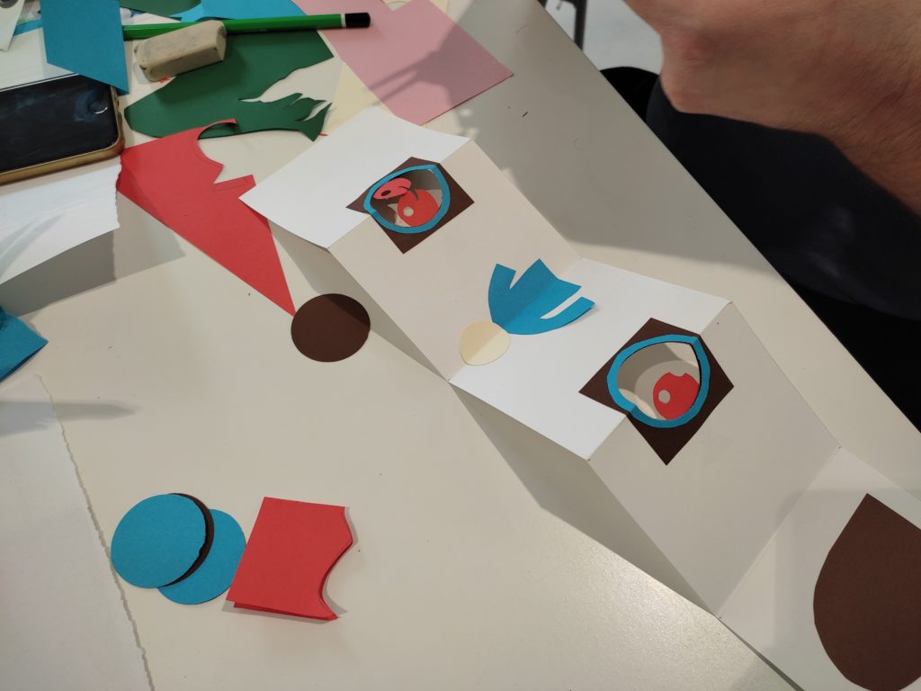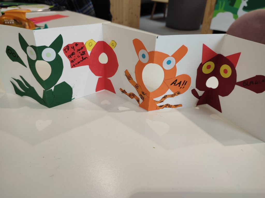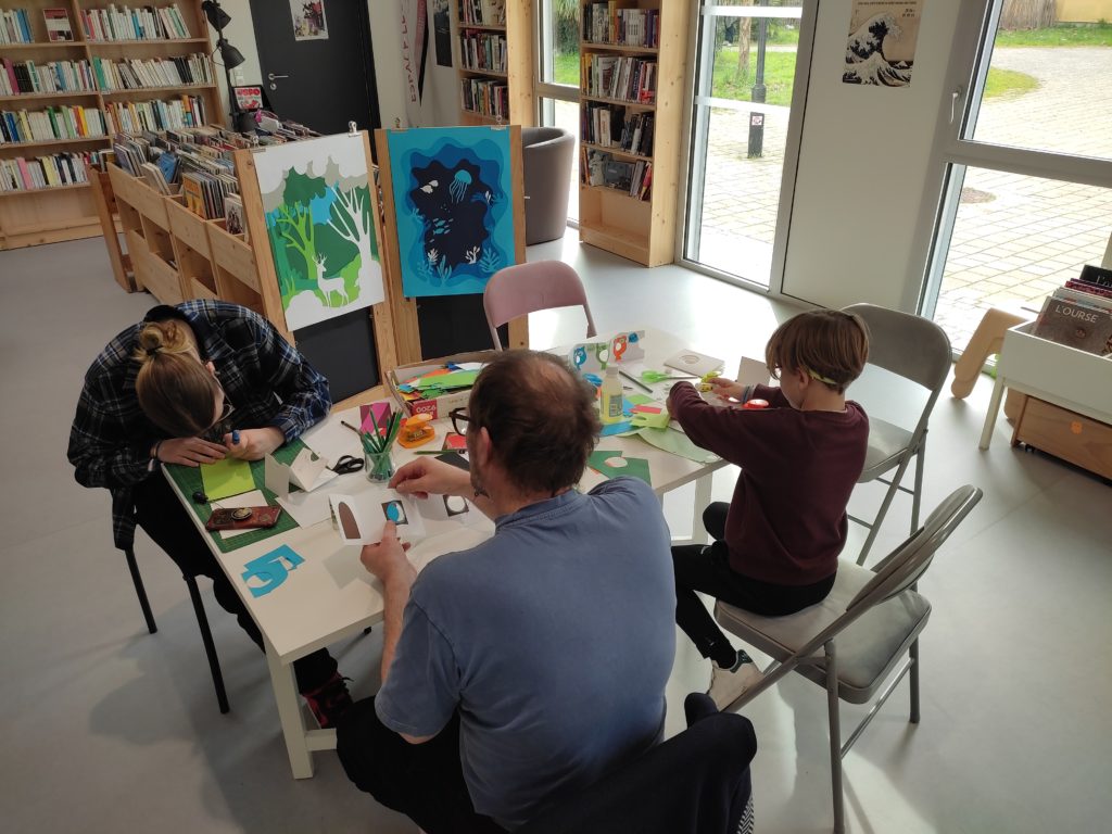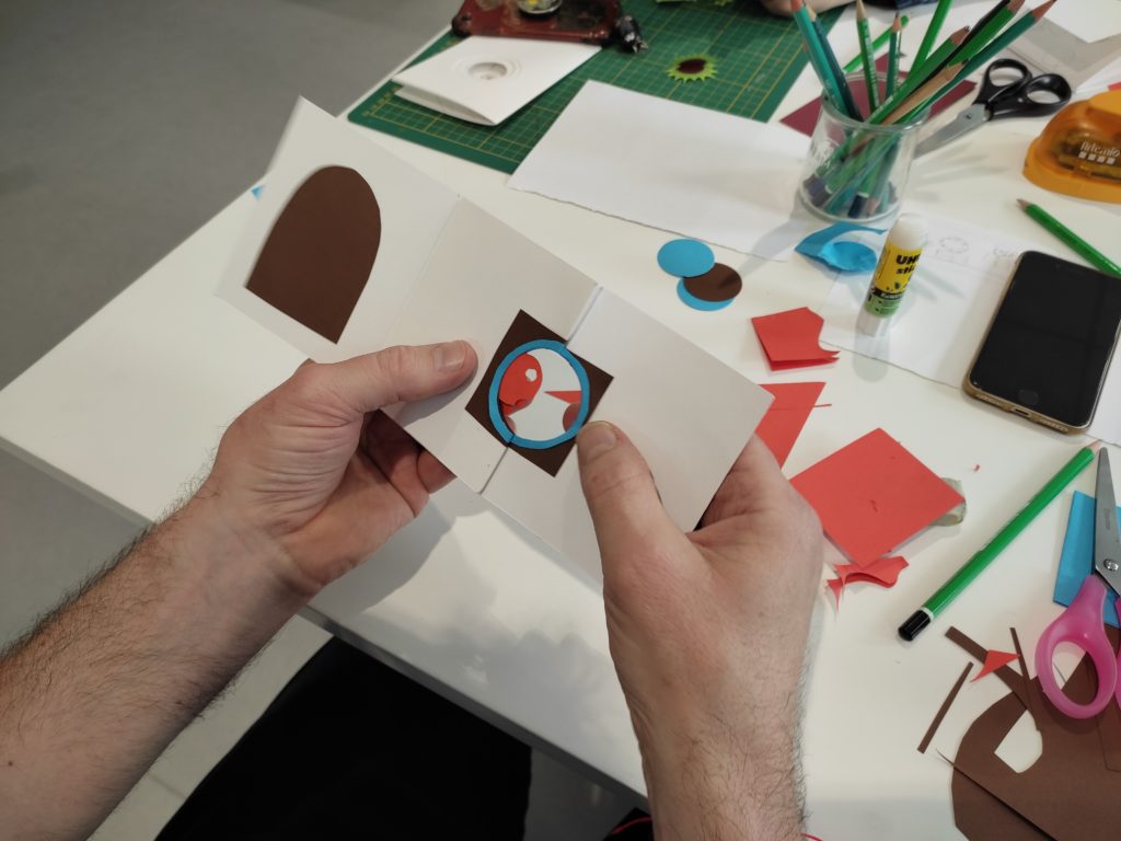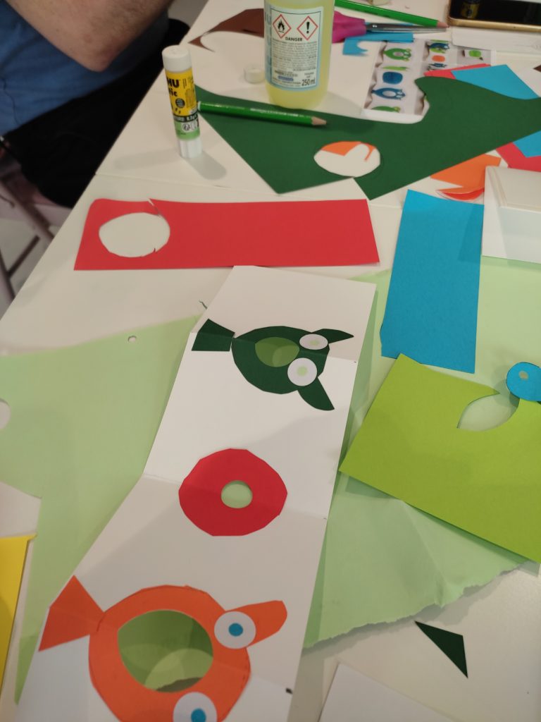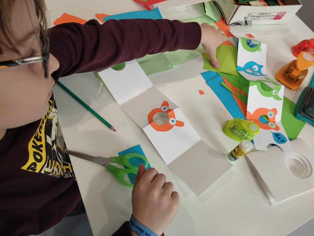 Pour le premier atelier des vacances d’hiver, sur le thème “Des livres originaux”, la bibliothèque à proposé de faire un mini livre avec des trous, de manière à jouer avec les pleins et les vides.