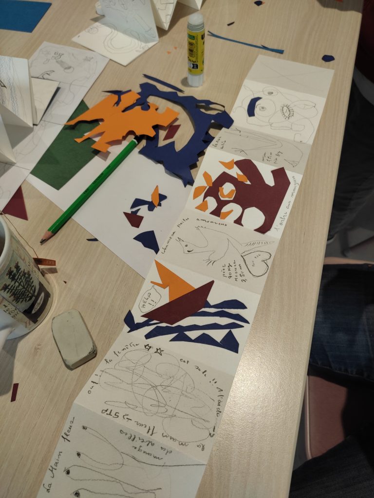 Pour le deuxième atelier sur le thème “Des livres originaux”, la bibliothèque à proposé aux participants de confectionner des petits livres accordéons.